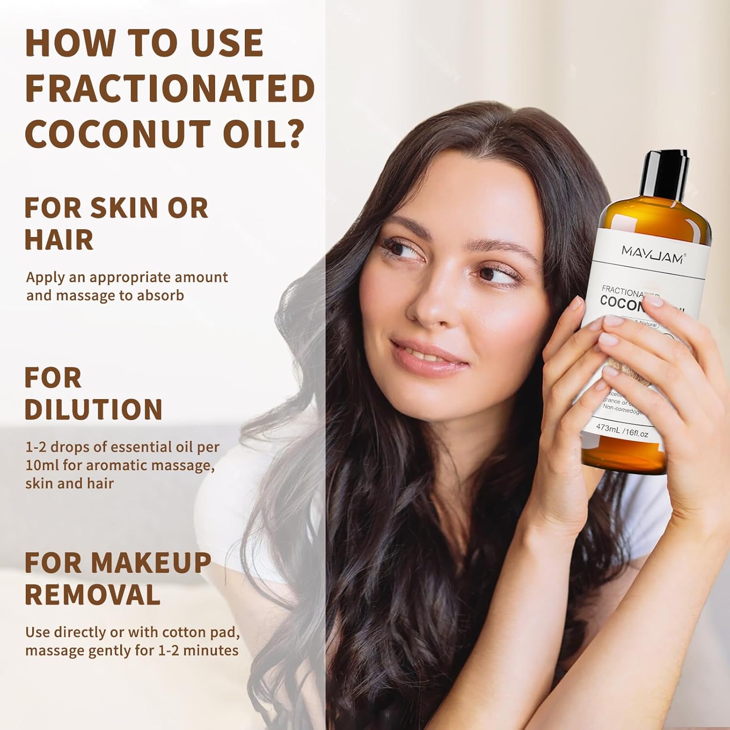 It can be used for skin hydration, hair nourishment, massage, and blending with essential oils.